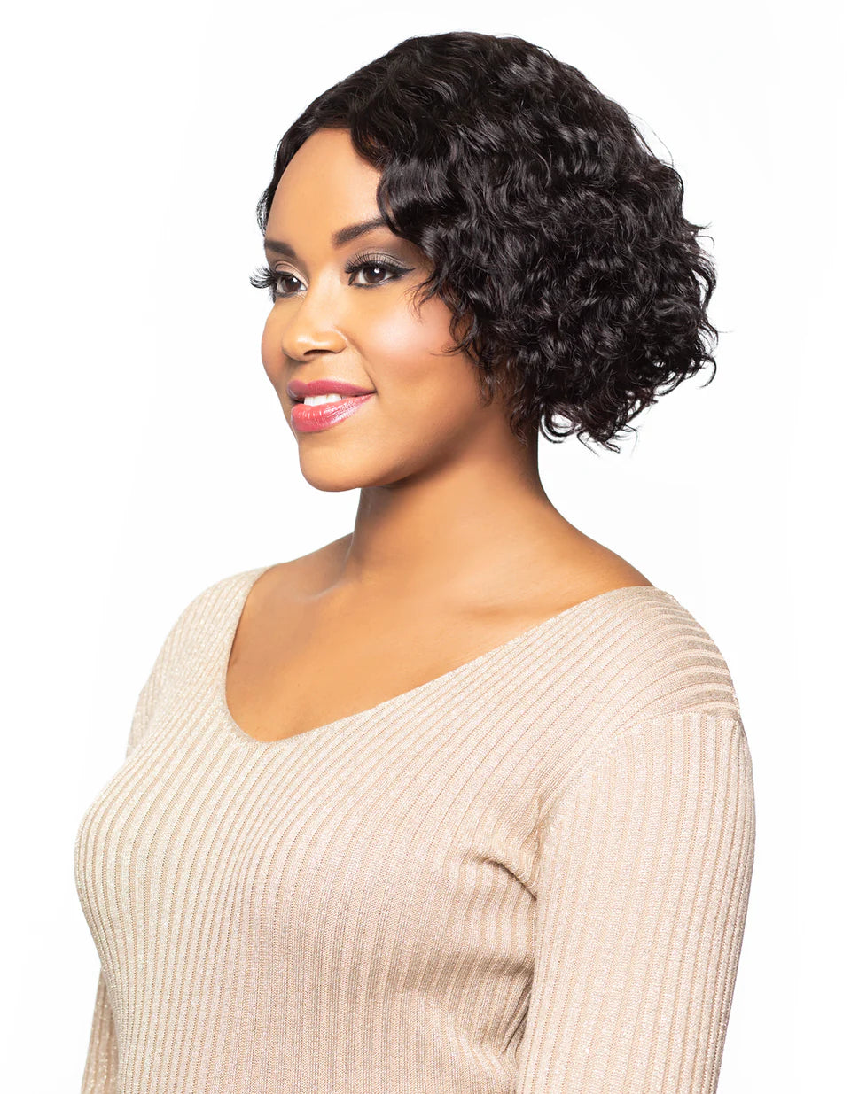 LOVIE is made from Virgin Cuticle-aligned human hair which makes her perfect for everyday use. She has transparent lace, bleached knots, clips, combs, and an adjustable elastic band for the perfect glue-less fit. She can be put in a middle/side part and can be put up in a ponytail.
